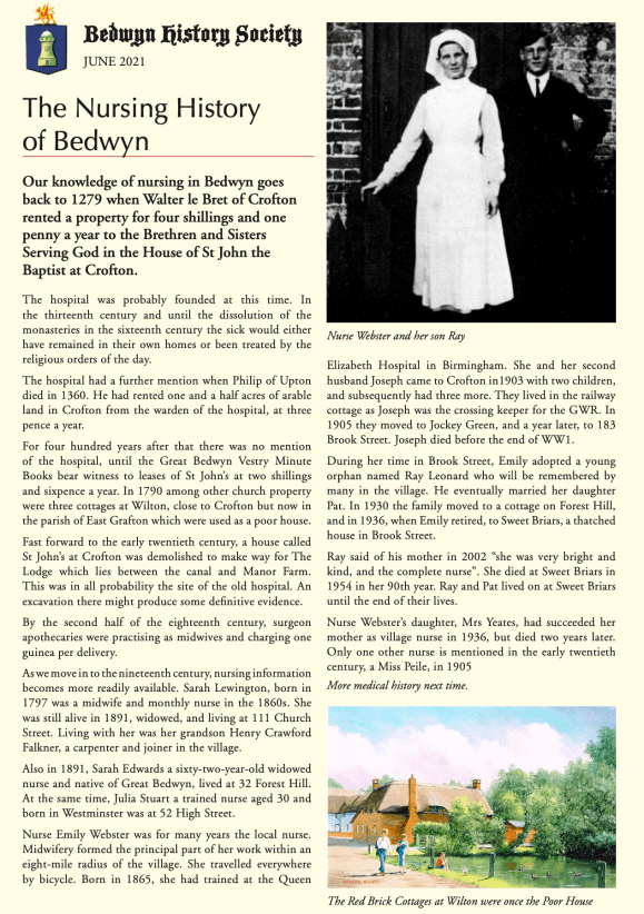 Further articles like this of local interest can be found in the Bedwyn History Society’s newsletter The Chronicles, produced up to four times a year and available to members only. Membership is currently £15 a year which includes entrance to nine meetings. Membership enquiries to Steve Hobson on bedwynhistory@hotmail.co.uk.